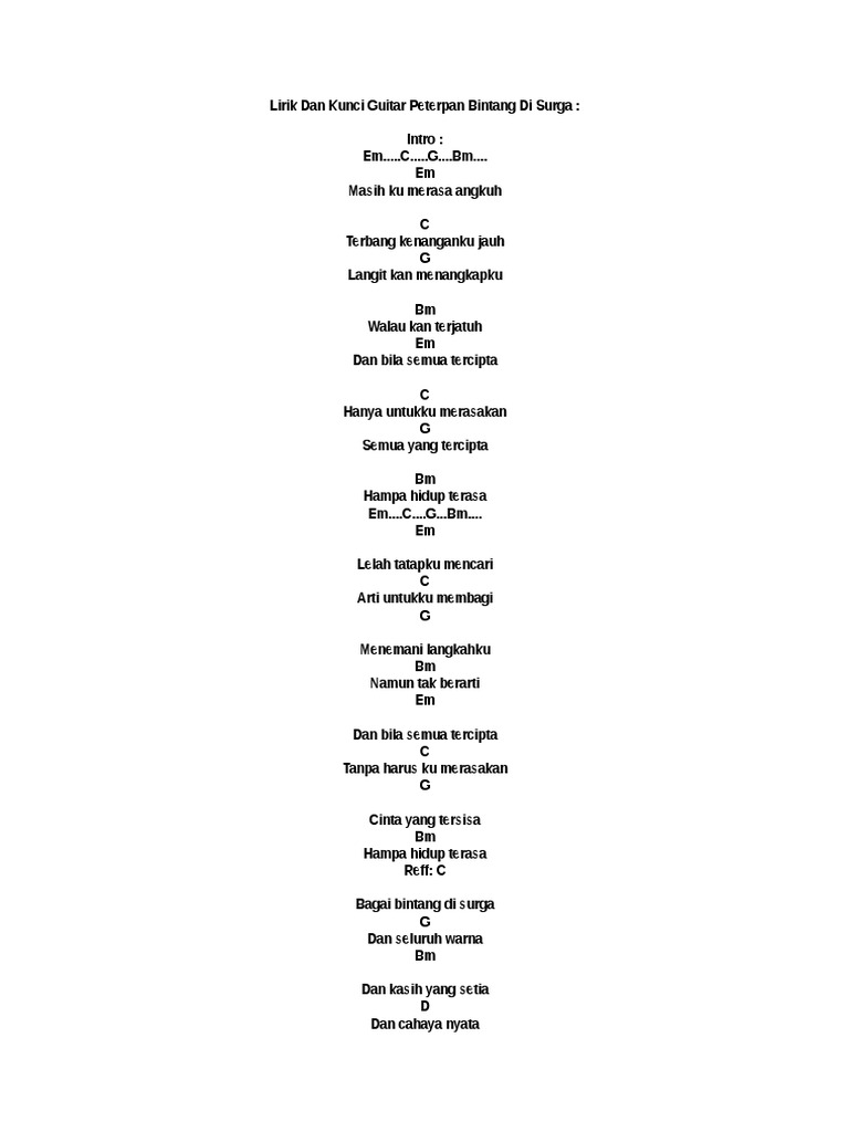 Chord Peterpan Bintang Di Surga Chord Gitar Indonesia Kumpulan Kunci Gitar Musik Indonesia Dan Mancanegara