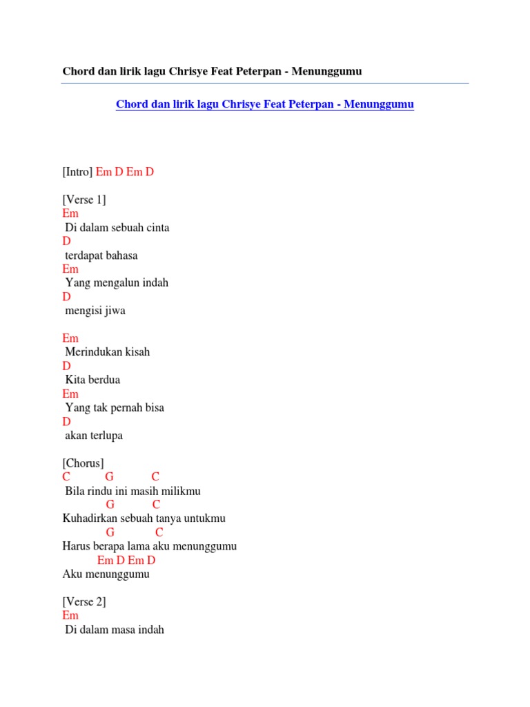 Chord Gitar Dan Lirik Lagu Menunggumu Chrisye Feat Peterpan Bila Rindu Ini Masih Milikmu Tribunnews Com Mobile